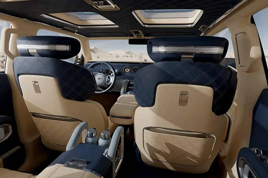 這款全新越野車型將以X Gran Equator概念車為藍本開發,預計保留概念車標志性的硬朗設計語言。車身輪廓采用修長發動機艙與流線型座艙的組合,配合高離地間隙與全地形輪胎,展現出強烈的越野氣質。概念車配備的24英寸防脫圈輪轂和幾何造型輔助燈組,將雙線頭燈設計元素與越野風格完美融合,對開式尾門設計則兼顧實用性與辨識度。