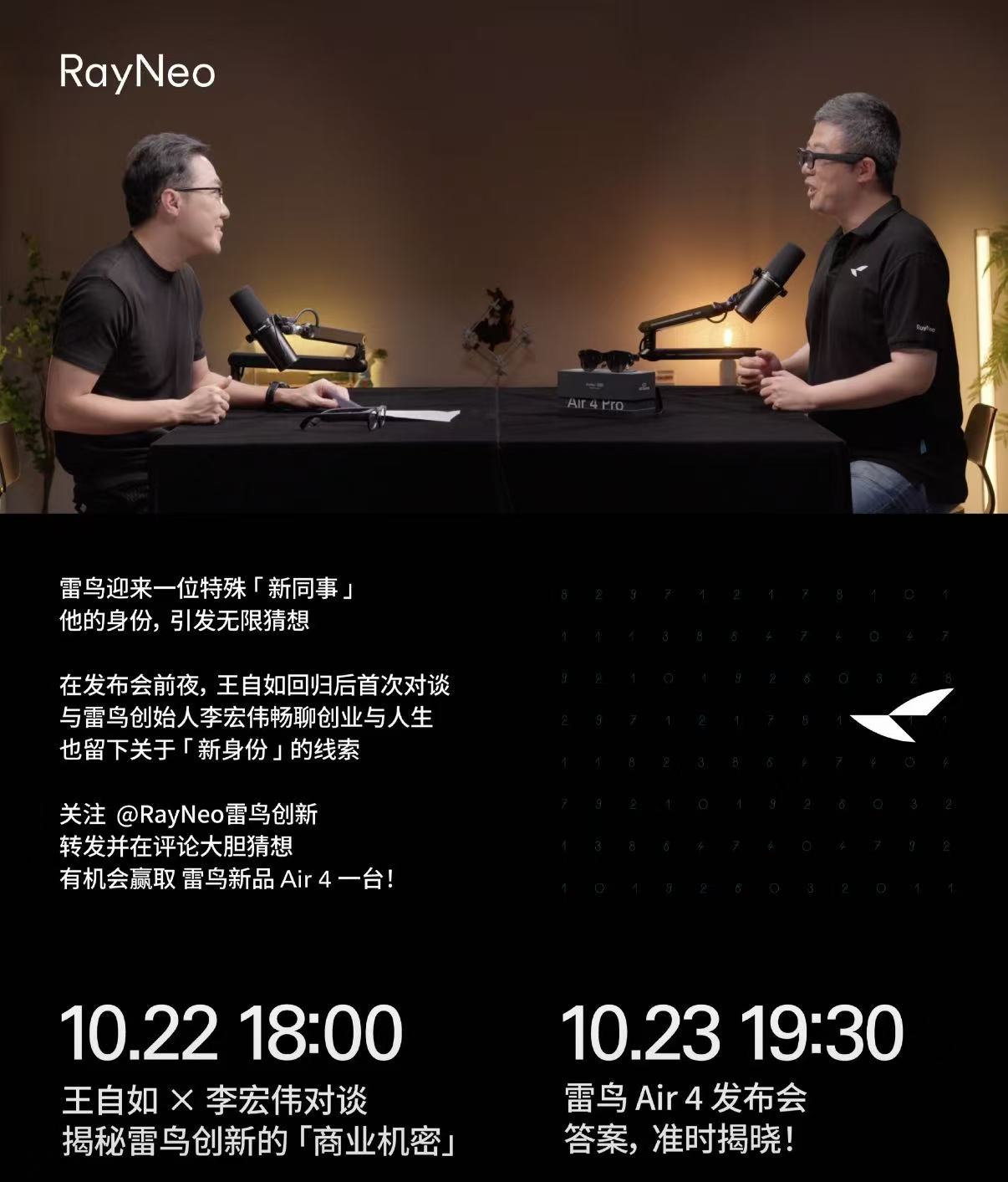 雷鳥創新還發布了一張宣傳海報,透露王自如將與公司創始人進行一場深度對話。這一消息引發了網友的熱議,有人戲稱王自如這是要效仿羅永浩,涉足對話類播客領域。