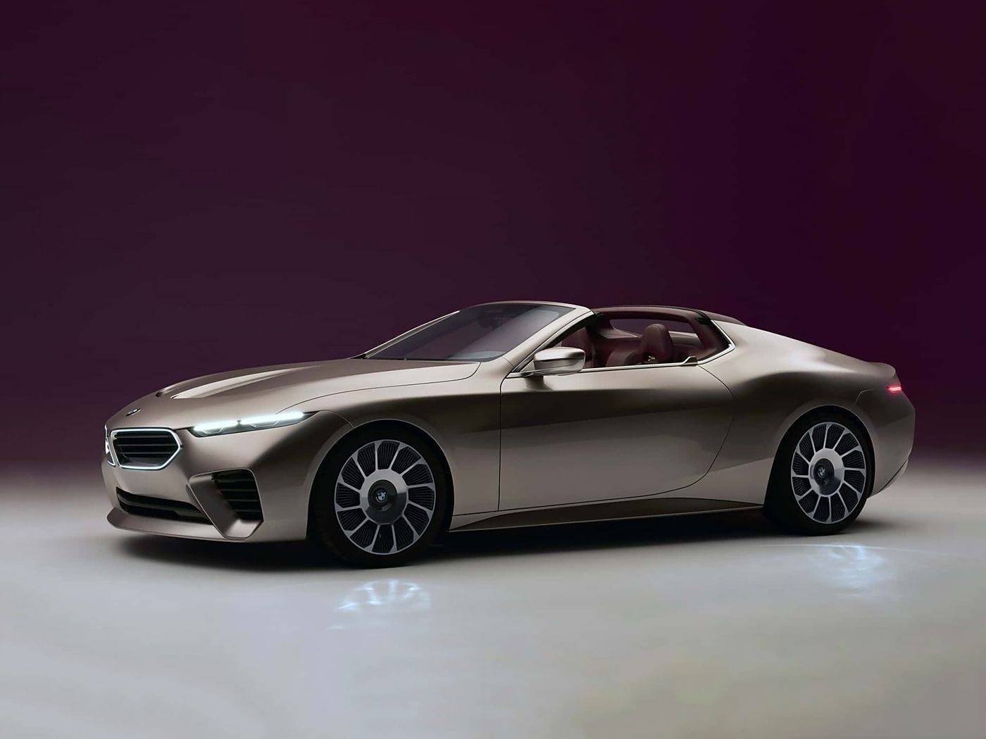 從外觀設計來看,Skytop概念車以雙門敞篷造型亮相,車身線條流暢且修長,盡顯優雅氣質。車頭部分采用極具運動感的sharknose風格設計,向前突出的造型賦予車輛強烈的視覺沖擊力。標志性的雙腎格柵采用寶馬最新設計語言,兩側LED大燈組造型獨特,辨識度極高。發動機艙蓋中部兩條隆起的筋線,進一步強化了車輛的力量感。車身側面,隱藏式門把手與腰線完美融合,呈現出簡潔而動感的視覺效果。車尾部分,狹長且優雅的長尾設計搭配小鴨尾,尾燈采用犀利的細長造型,同時配備雙邊共兩出式排氣布局,為整車增添了濃郁的運動氛圍。