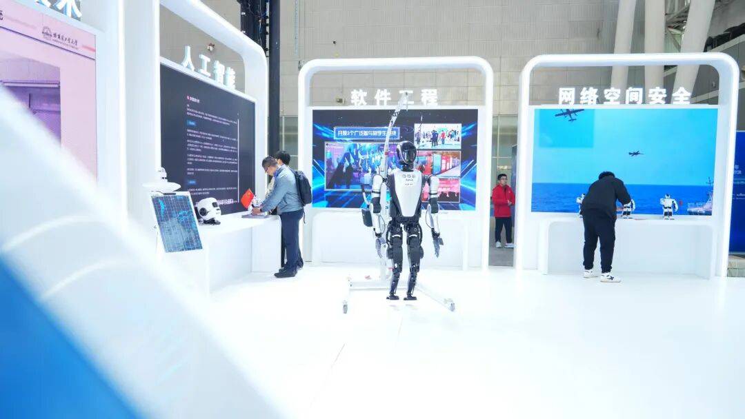 互動體驗區成為本次展覽的亮點之一。MR理化生數智實驗空間通過空間深度算法,將虛擬實驗器材融入現實環境,學生可親手操作虛擬實驗設備,沉浸式體驗科技魅力;機器人活動區則展示了雙足機器人的實體化應用,觀眾可通過對話、指令與機器人互動,感受其日益逼近人類的智能水平;AI棋藝競技場內,“下棋機器人”融合傳統棋類與智能算法,觀眾可與自適應難度的AI對弈,體驗人機博弈的樂趣;AI音樂互動區則提供歌曲創作、音樂MV制作、歌曲改編等服務,觀眾只需與AI Agent對話即可完成個性化創作。