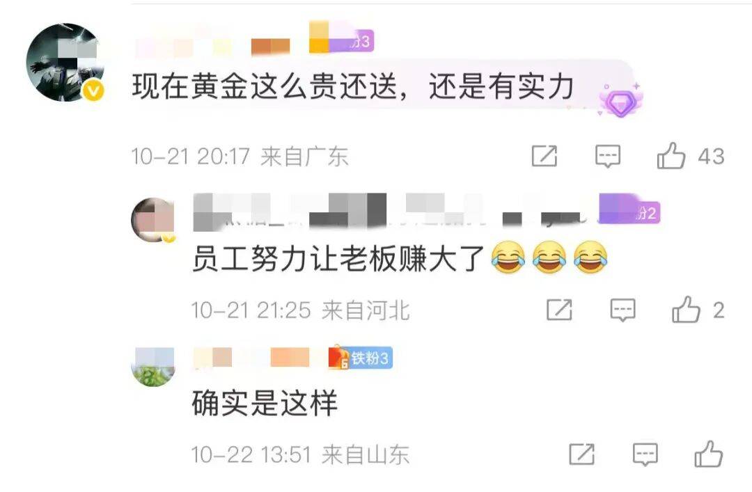 根據員工透露的信息,入職滿3年的員工可獲得約4克重的金戒指,滿5年員工獲贈11克金戒指,而入職滿10年的資深員工則收到重達100克的“金雞”黃金擺件。有員工在社交媒體上表示:“當前金價持續走高,公司仍堅持發放黃金禮品,這份福利確實很有誠意。”