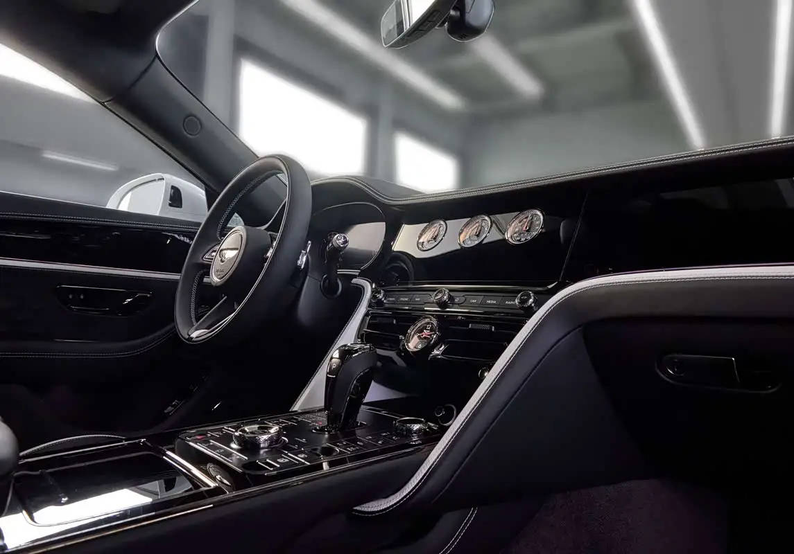 進入車內,內飾部分以鋼琴黑飾板為主基調,高亮的漆面質感營造出一種濃郁的典雅氛圍。精致的機械儀表與按鍵巧妙地點綴其間,不僅展現了頂級工藝,更將藝術美學與實用功能完美融合。這種跨界的設計理念,使得車內空間既豪華又富有藝術氣息。
