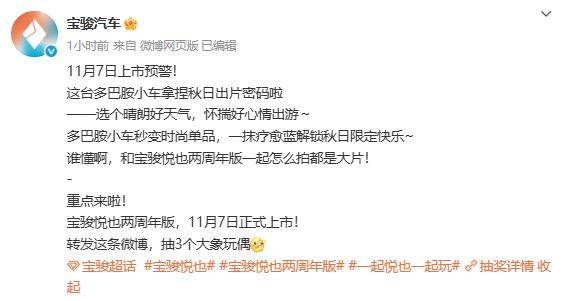 寶駿汽車近日宣布,旗下悅也車型將推出兩周年特別版,并計劃于11月7日正式上市。雖然官方尚未公布這款特別版車型的詳細升級信息,但從發布的宣傳海報中可以看出,新車采用了全新的霧霾藍車身配色,搭配與車身同色的密輻式輪圈,整體視覺效果更加時尚動感。