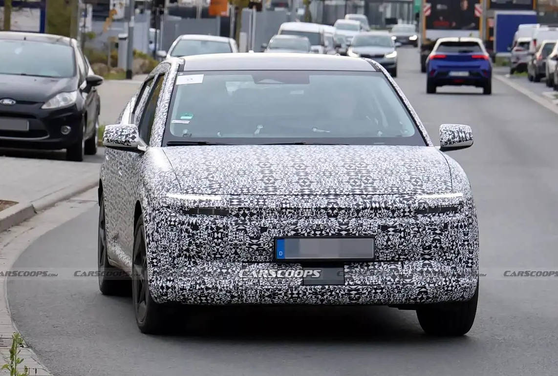 從諜照來看,雖然車身仍覆蓋著偽裝貼紙,但整體輪廓已與概念車高度接近。前臉采用封閉式格柵設(shè)計,上方配備兩條纖細(xì)的分體式LED大燈,中央貫穿式裝飾條延伸至兩側(cè),形成獨(dú)特的視覺標(biāo)識。下包圍區(qū)域雖被嚴(yán)密遮擋,但根據(jù)設(shè)計邏輯推測,此處可能設(shè)置扁平化通風(fēng)口,用于電池組散熱。