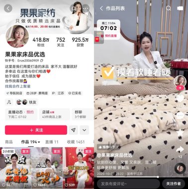 一條上千萬曝光的家庭改造視頻讓@果果家床品優選 漲粉超20萬,也由此開啟了她在快手上的創造奇跡之旅。從2018年的第一條視頻,到2019年的第一次直播,再到如今收獲超400萬快手粉絲喜愛,果果和愛人穩哥白手起家,多年來深耕家紡行業,一直堅持將好的、實惠的產品帶給所有支持她的老鐵們。