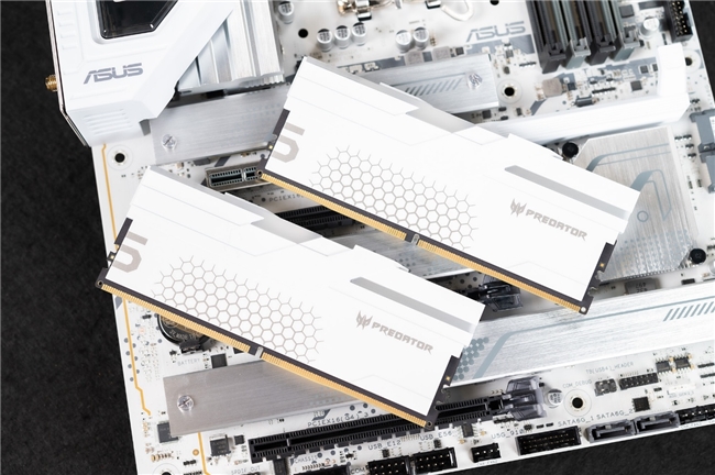 內存部分,我們采用的是宏碁掠奪者Hermes冰刃 DDR5 8000 48GB套裝,它是宏碁掠奪者專門針對IPO所推出的產品,采用了最新一代的海力士3GB M-Die內存顆粒,1.45v的電壓也低于同頻率旗艦內存,頻率8000MHz,時序CL38,支持Intel XMP3.0。