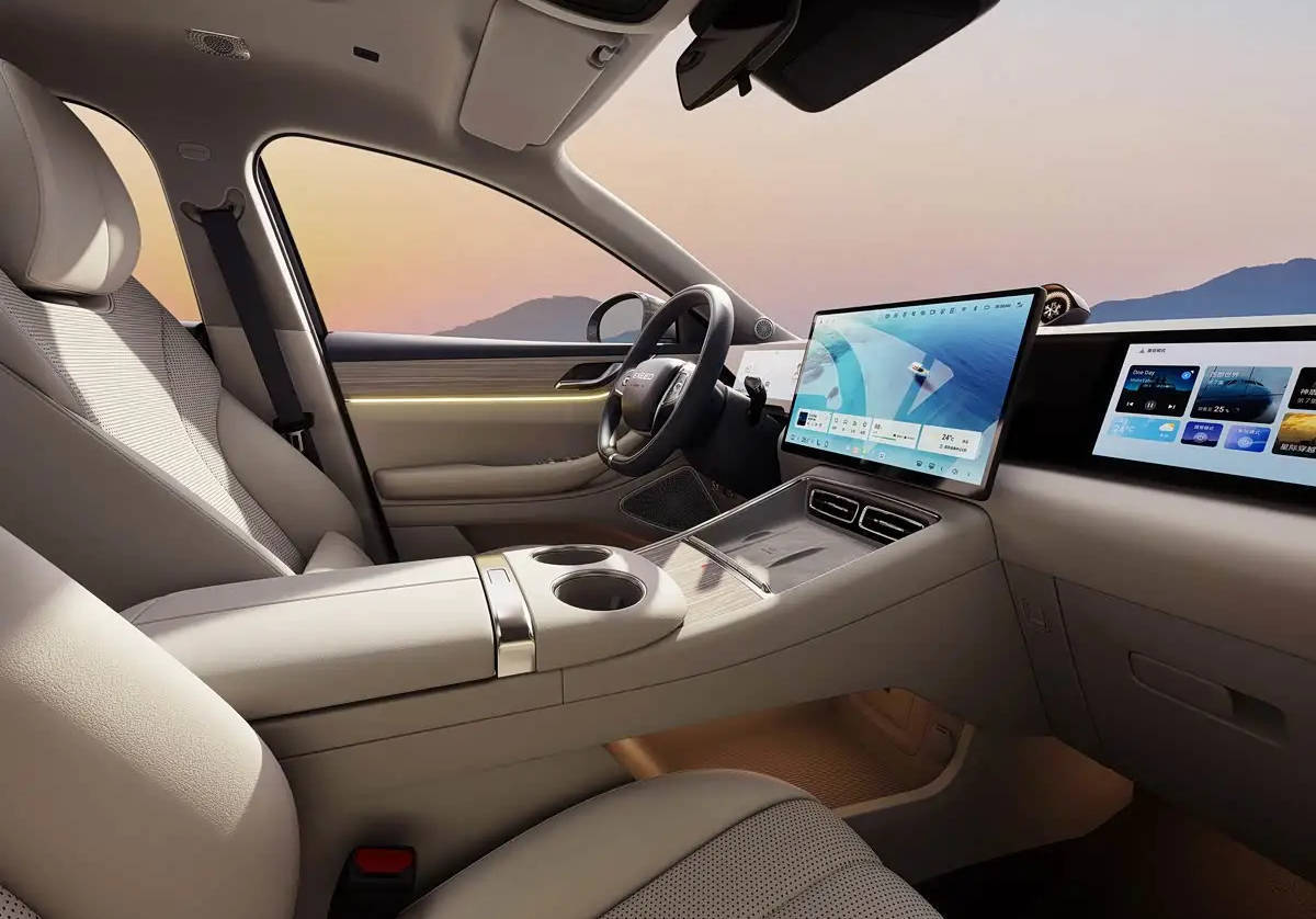 車身側面采用溜背式轎跑設計,車頂線條自B柱開始迅速下滑,營造出蓄勢待發的動感姿態。車輛保留了傳統門把手設計,翼子板處配備高清攝像頭。尺寸方面,新車長寬高分別為4780mm、1890mm和1725mm,軸距達到2800mm,為車內空間提供了有力保障。