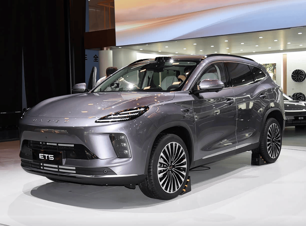 方向盤采用雙幅式設計,滾珠造型十分獨特,后方設有銀色換擋撥桿。座椅采用皮質包裹,靠背和座墊均進行打孔處理,預計將配備座椅通風等功能。后排設有獨立空調出風口,車內還保留了部分實體按鍵,便于用戶操作。動力方面,ET5將推出增程版車型,搭載1.5T發動機,最大功率115千瓦,純電續航里程可達165公里。