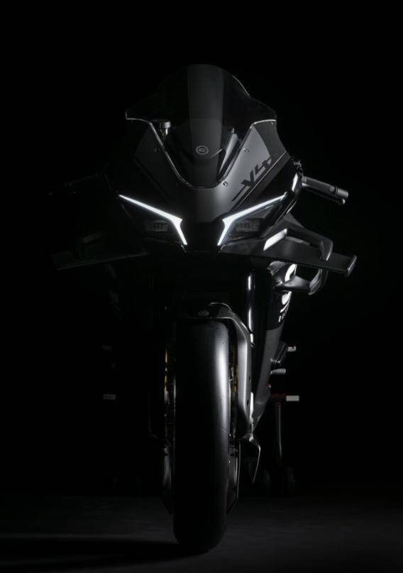 作為SR系列的旗艦,V4 SR-RR的研發平臺屬性同樣突出。其搭載的全新電控系統整合了主動電子懸掛,可根據速度、路況與騎行操作實時調整阻尼,在賽道激烈駕駛與日常通勤間無縫切換。整車重量分配與結構布局經過精密計算,實現前端反饋與出彎牽引力的黃金平衡,配合優化后的車頭造型與車身線條,既降低空氣阻力,又賦予車輛極具未來感的視覺沖擊。
