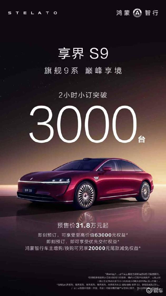 為了讓消費者更直觀地感受新車魅力,新款享界S9的展車已陸續抵達各地銷售門店。同時,品牌方在預售期間推出了一系列豐厚的購車權益,總價值最高可達63000元。具體權益包括:2000元訂金可抵5000元購車尾款;限時免費獲得價值最高10000元的寰宇紅或浩宇藍外觀配色;贈送價值10000元的零重力座椅禮券;提供價值20000元的ADS高階功能包補貼;贈送價值6000元的舒享用車大禮包;贈送價值4000元的輔助駕駛無憂服務;贈送最高10000元的定向選裝優惠;鴻蒙智行其他車型車主增購或換購時,還可享受2萬元尾款減免。