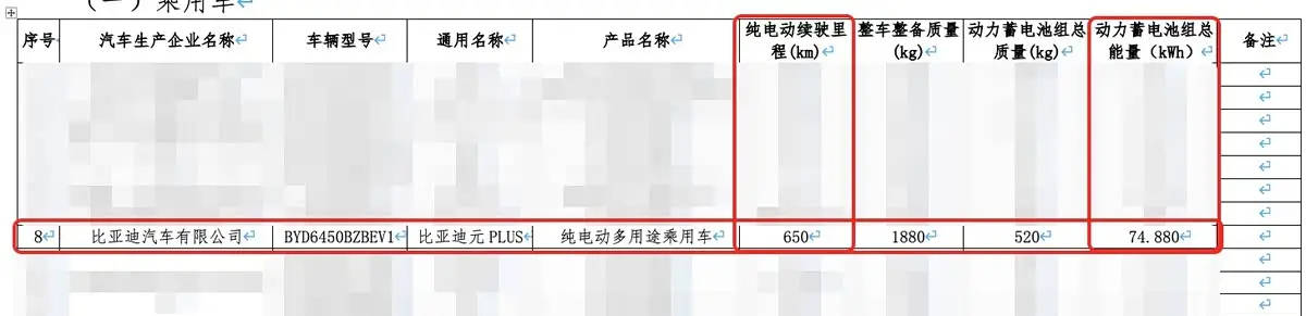 新款比亞迪元PLUS申報信息揭曉 配74.88kWh電池組續航達650公里