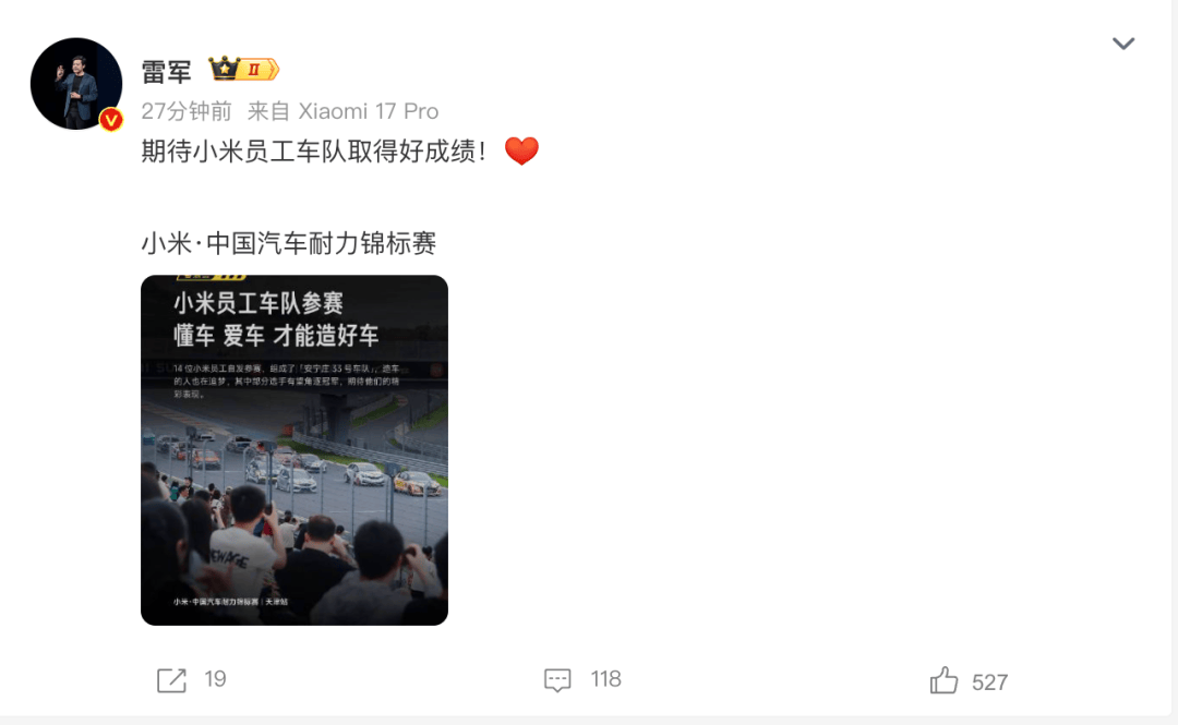小米汽車官方此前已發布消息,正式宣布了這場年度收官戰的相關信息。作為國內汽車耐力賽事的頂級盛會,本次比賽不僅吸引了眾多專業車手的參與,也引發了廣大汽車愛好者的關注和期待。大家紛紛表示,將密切關注比賽進程,為心儀的車隊和選手加油助威。