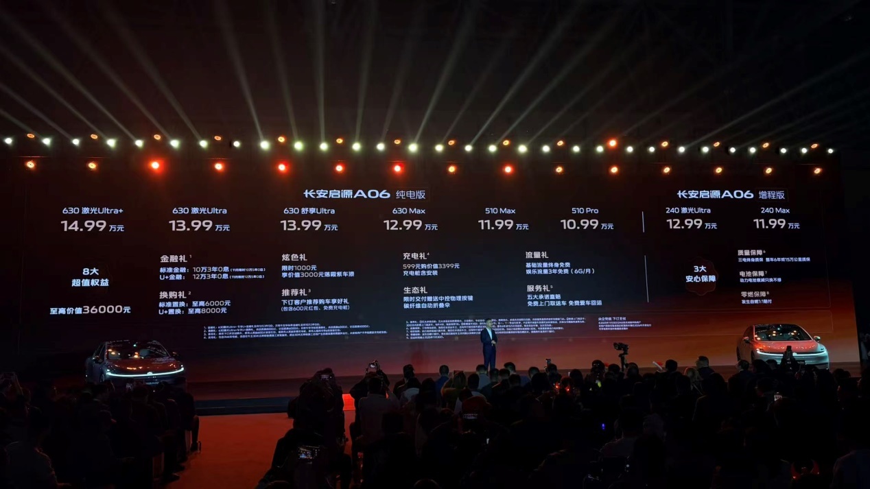 長安啟源品牌再推力作,旗下全新中型新能源家轎A06于近日正式上市。這款定位11萬級市場的純電轎車,以2922mm超長軸距、800V高壓平臺及同級唯一前雙叉臂+后五連桿獨立懸架的配置組合,成為新能源家轎市場的新標桿。
