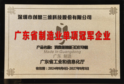 此前,創想三維已獲得“廣東省制造業單項冠軍企業”及“深圳市制造業單項冠軍企業”稱號,至此已實現了從市級、省級到國家級的“單項冠軍”榮譽大滿貫。這不僅是對創想三維長期專注與持續創新的肯定,也標志著其行業龍頭地位再次鞏固。