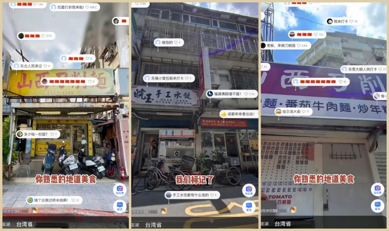 不少大陸網友還在評論區分享自己的“云旅游”體驗,留下了諸多暖心留言。“東北人民來過”的樸實打卡,“吃面打折我來啦”的俏皮調侃,充滿了生活氣息;“搞個云南過橋米線啊”“無錫小籠包前來打卡”“福建佛跳墻不服”“成都串串香出戰” ,圍繞著各地美食展開互動,盡顯兩岸飲食文化的交融。