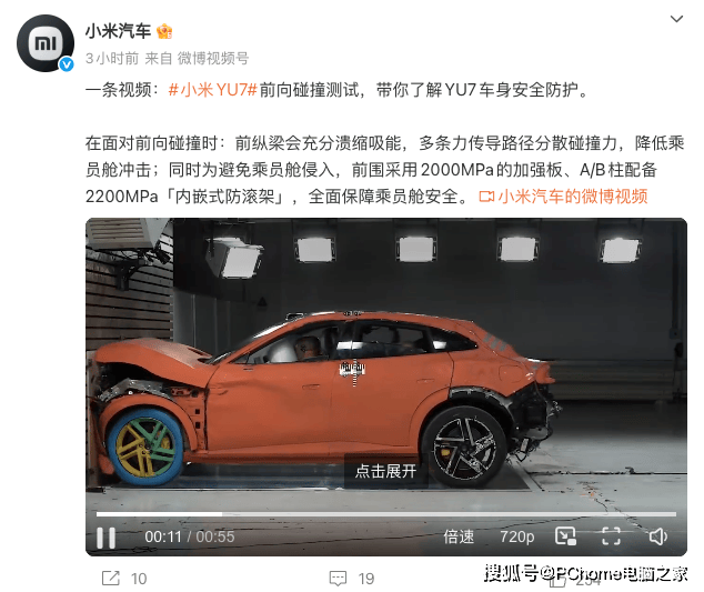 小米汽車近日通過官方社交媒體平臺發布了一段引人注目的視頻,重點展示了其最新車型YU7在嚴苛前向碰撞測試中的卓越表現。這段視頻全面呈現了YU7車身結構在碰撞瞬間的能量吸收與分散能力,凸顯了小米在汽車安全領域的深厚技術積累。
