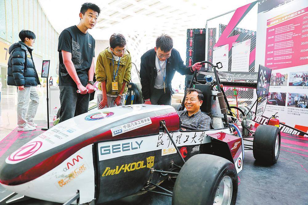 在車(chē)展現(xiàn)場(chǎng),一款由昆明理工大學(xué)KMUST方程式車(chē)隊(duì)獨(dú)立設(shè)計(jì)、制造并調(diào)試的方程式賽車(chē)格外引人注目。這款賽車(chē)不僅展現(xiàn)了昆明理工大學(xué)在汽車(chē)工程領(lǐng)域的深厚實(shí)力,也體現(xiàn)了年輕學(xué)子們對(duì)汽車(chē)科技的無(wú)限熱情和創(chuàng)造力。市民們紛紛駐足觀看,甚至有機(jī)會(huì)親身體驗(yàn)這款賽車(chē)的獨(dú)特魅力。
