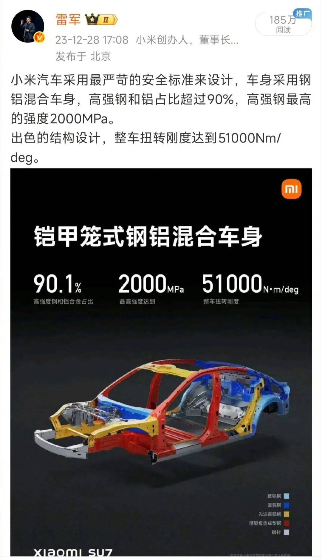 雷軍連發動態回應爭議:小米SU7顏值與安全并非對立,安全理念貫穿始終