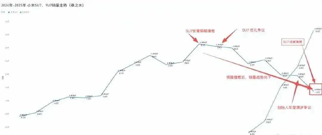 這場輿論風波對小米SU7的市場表現產生了直接影響。數據顯示,2025年10月,小米SU7的銷量僅為14992輛,跌破1.5萬輛關口,市場份額縮水至30%。而在今年4月,該車型還以2.6萬輛的銷量拿下20-30萬純電轎車細分市場46%的份額。銷量下滑的背后,除了市場競爭加劇外,3月安徽銅陵和10月成都的兩起撞燃事故引發的負面輿論也是重要原因。
