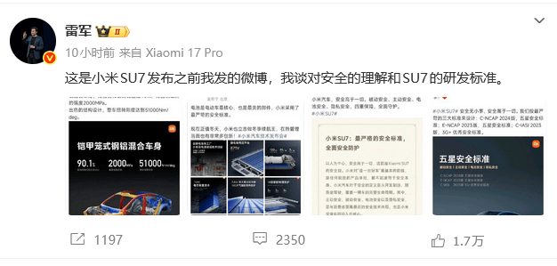 小米創始人雷軍近日在社交媒體上連續發布多條動態,聚焦汽車安全議題,引發廣泛關注。針對網絡上的部分爭議言論,雷軍直言不諱地指出:“部分內容存在斷章取義、刻意歪曲的現象。”這一表態被外界解讀為對近期質疑聲的直接回應。