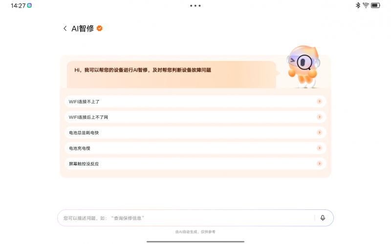 功能亮點:AI智修幫你搞定常見設(shè)備問題