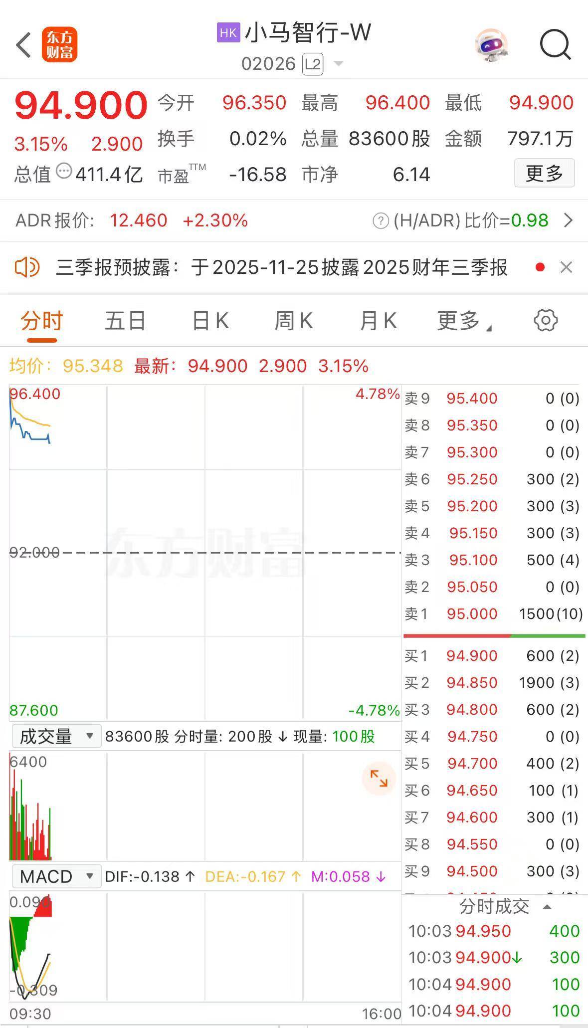 這一合作消息公布后,在資本市場也引起了關注。在11月19日早盤,小馬智行 - W股價高開近5%,不過截至10時05分,漲幅有所回落,報94.9港元/股,漲幅為3.15% 。這一股價波動反映出市場對于小馬智行此次合作動態的積極反應。