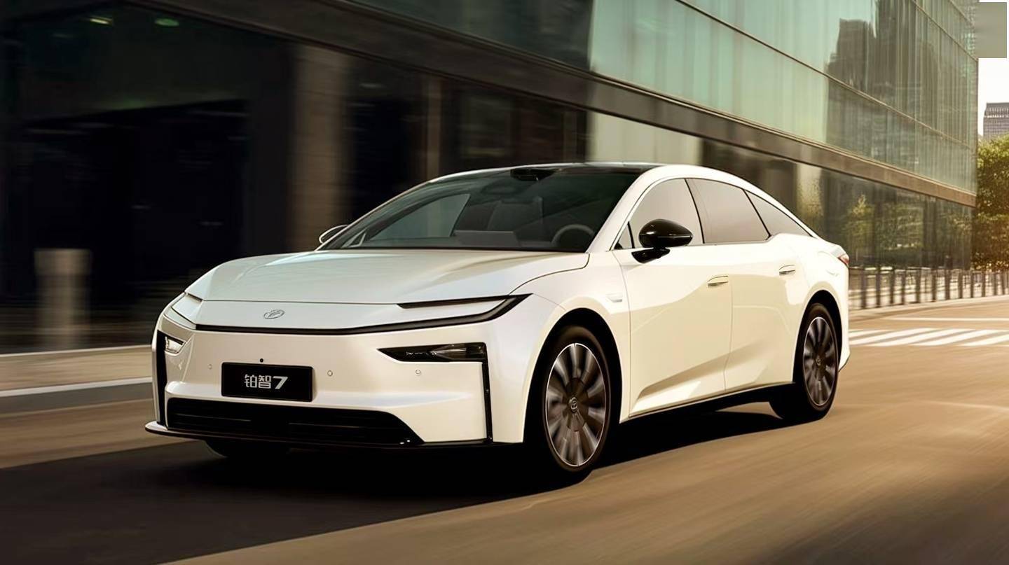 另一款重磅車型鉑智7被定位為“豐田大美旗艦”,由中國團隊主導研發,整合了華為核心技術。該車長寬高分別為5130/1965/1506mm,軸距3020mm,以轎跑式車身設計強調運動感。技術配置上,搭載華為Drive One電驅系統,最大功率207千瓦,匹配中創新航磷酸鐵鋰電池,最高時速可達180km/h。鉑智7還是業內首款同時兼容華為與小米生態的車型,并配備Momenta智能輔助駕駛系統,進一步拓展智能出行場景。
