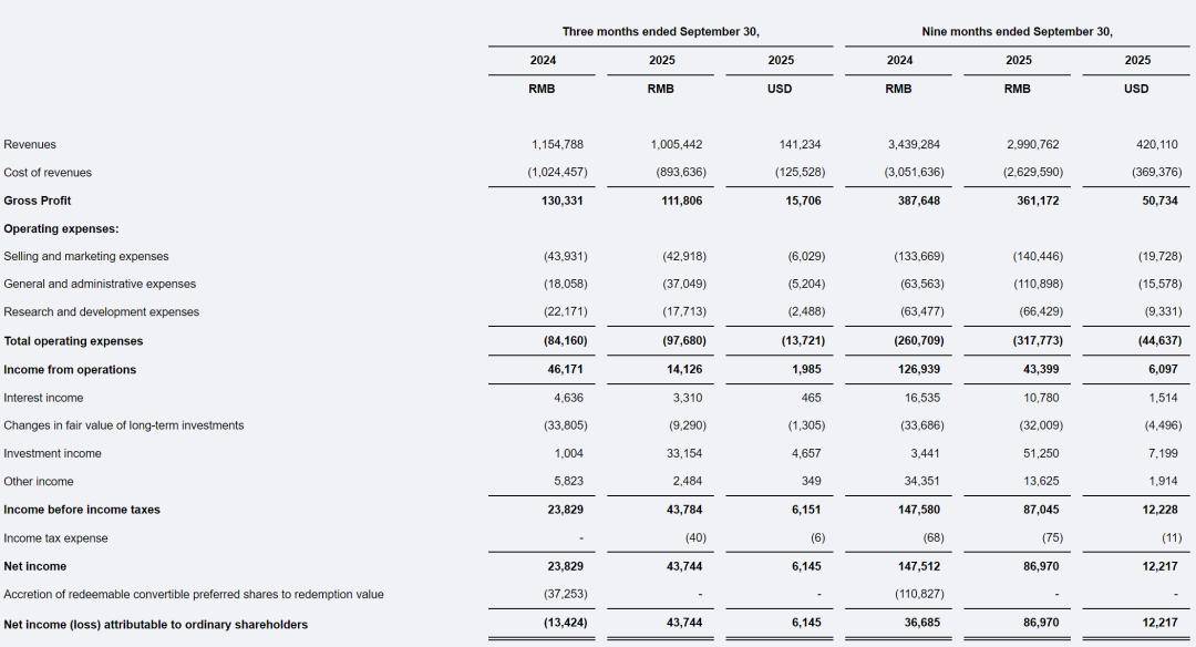閃送(Nasdaq:FLX)近日公布了其2025年第三季度財務(wù)業(yè)績,數(shù)據(jù)顯示公司在營收、利潤和運(yùn)營效率方面均實(shí)現(xiàn)了穩(wěn)健增長。根據(jù)財報,閃送在2025年前九個月實(shí)現(xiàn)總營收29.91億元,折合約4.2億美元,毛利達(dá)到3.61億元,運(yùn)營利潤為4340萬元,凈利潤則為8697萬元。