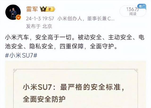 雷軍重申小米汽車安全理念 斥部分網友斷章取義歪曲其言論