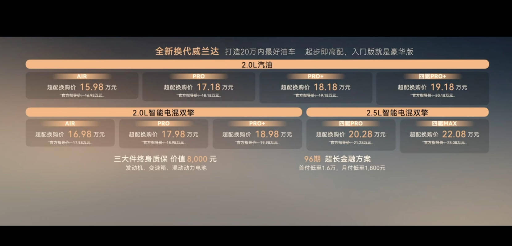 動(dòng)力系統(tǒng)方面,新車提供三種動(dòng)力選擇,包括2.0L燃油版、2.0L混動(dòng)版以及2.5L混動(dòng)版。其中,2.0L燃油版發(fā)動(dòng)機(jī)最大功率為126kW;2.0L混動(dòng)版發(fā)動(dòng)機(jī)最大功率為112kW;2.5L混動(dòng)版發(fā)動(dòng)機(jī)最大功率則為136kW。多樣化的動(dòng)力配置,能夠滿足不同消費(fèi)者的需求。