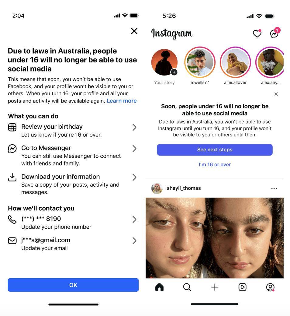 作為首家公開響應該禁令的科技企業,meta公司近日宣布,將從12月10日起停用澳大利亞境內所有未滿16歲用戶的Facebook和Instagram賬戶。根據其發布的通知,受影響用戶將在賬戶停用前14天通過應用內推送、電子郵件及短信收到提醒。盡管Messenger不在此次禁令范圍內,但meta承諾將允許這些用戶無需關聯Facebook賬戶即可繼續使用該服務。同時,自12月4日起,未滿16歲的用戶將無法注冊新的meta旗下應用賬戶。