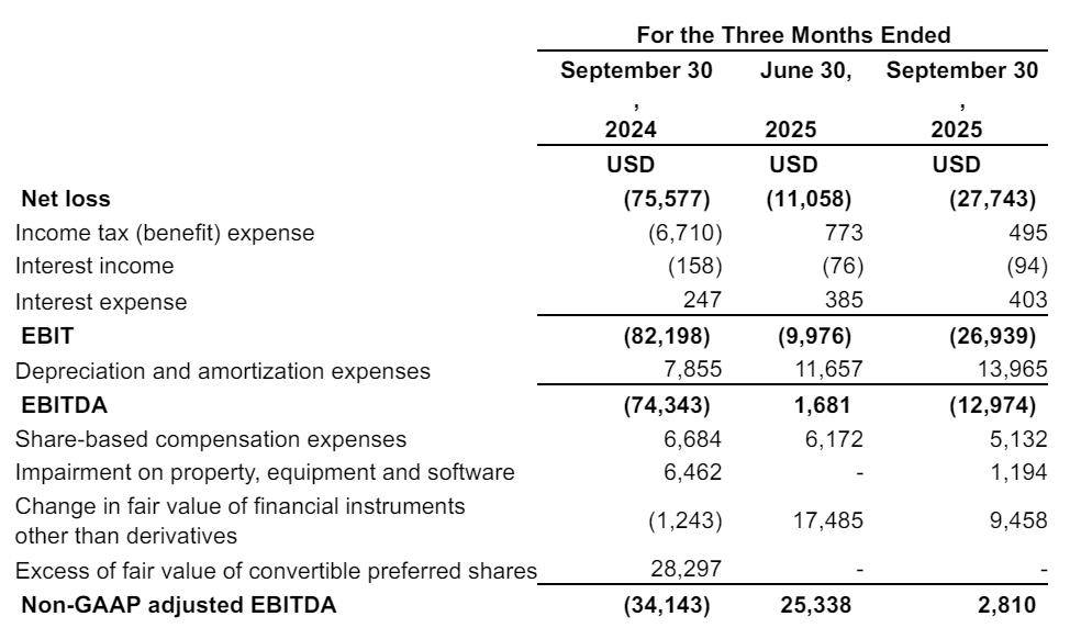 費用控制方面,第三季度總費用為4053萬美元,其中產品研發開支1634萬美元,銷售與市場開支507萬美元,管理費用1793萬美元。在盈利能力指標上,EBIT為-2694萬美元,EBITDA為-1297萬美元,但經調整后的Non-GAAP EBITDA實現281萬美元的正值,顯示核心業務盈利能力持續增強。