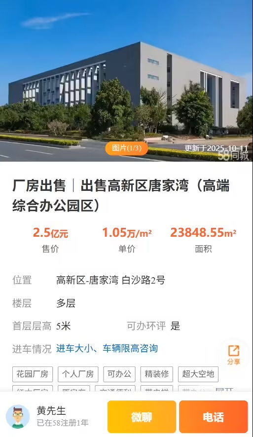 近日,一則關于高端辦公園區出售的消息引發關注。據58同城平臺信息顯示,廣東省珠海市高新區唐家灣有一處綜合辦公園區正在掛牌出售,標價高達2.5億元。