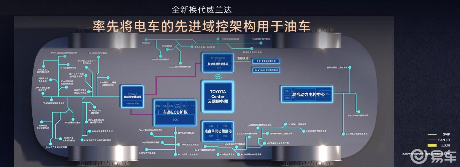 作為豐田首款搭載域控制器的燃油車型,全新威蘭達(dá)通過集中式電子電氣架構(gòu)實(shí)現(xiàn)算力整合。其核心采用高通驍龍8155P芯片,配合千兆以太網(wǎng)實(shí)現(xiàn)毫秒級數(shù)據(jù)傳輸,支持整車FOTA與SOTA遠(yuǎn)程升級功能。這一技術(shù)突破有效解決了傳統(tǒng)燃油車智能化迭代周期長的痛點(diǎn),為燃油車智能化發(fā)展提供了新思路。