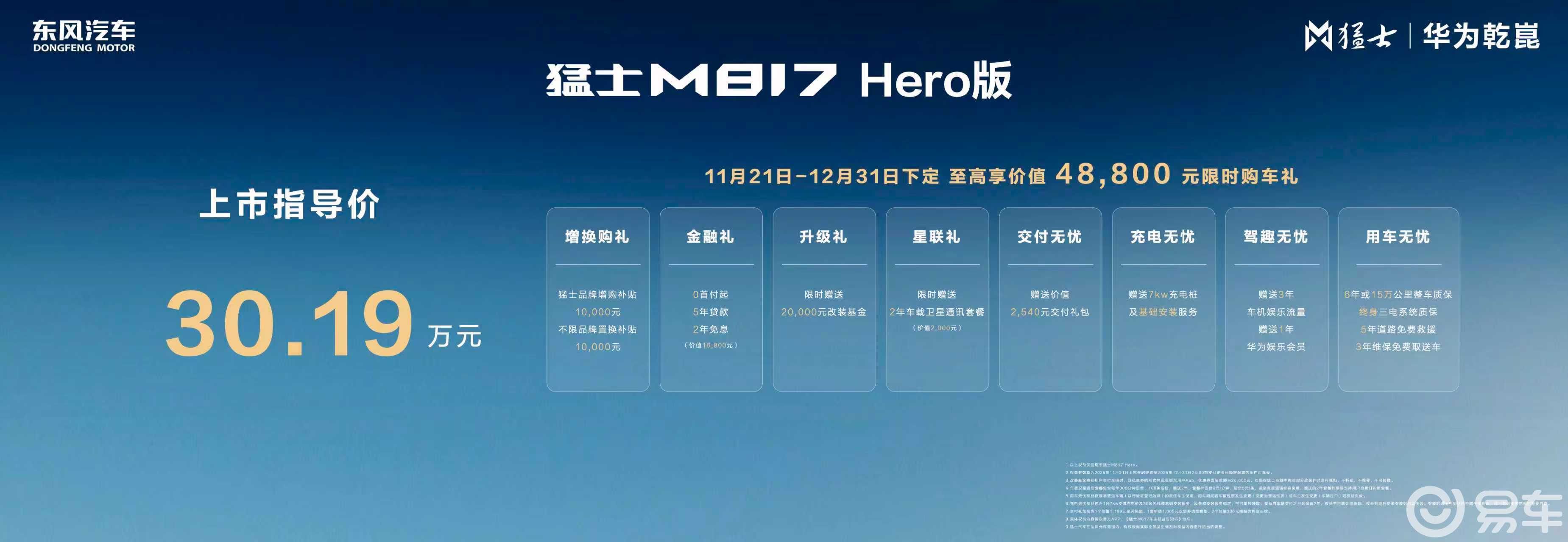 猛士汽車與華為乾崑聯(lián)合推出的豪華智能越野SUV——猛士M817 Hero版正式登陸市場,官方指導(dǎo)價30.19萬元。這款新車以“智能越野第一車”為定位,在延續(xù)猛士家族硬派越野基因的同時,通過智能化升級、全地形適應(yīng)性優(yōu)化及深度改裝潛力開發(fā),為越野愛好者帶來全新選擇。