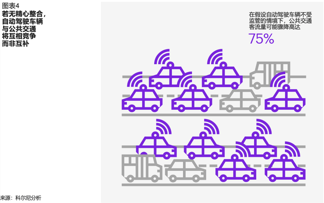 最后,公共交通面臨被蠶食的風(fēng)險。自動駕駛出租車若未與公共交通深度整合,可能成為競爭對手而非補充。無縫銜接的自動駕駛服務(wù)可能吸引乘客放棄公交換乘,導(dǎo)致公共交通客流下降、資金減少、服務(wù)惡化。綜合模型預(yù)測,在無監(jiān)管情景下,公共交通客流量可能驟降75%。現(xiàn)實中,Uber和Lyft進(jìn)入城市市場后,公交使用量每年下降約1.7%,鐵路下降1.3%,這一趨勢可能因自動駕駛的普及而加劇。