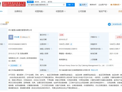 蜜雪冰城旗下四川餐飲管理公司注銷