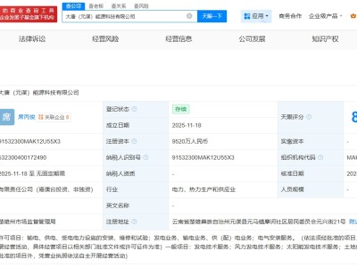 大唐新能源在云南元謀成立能源科技公司 注冊資本9520萬