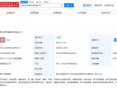 易事特在江蘇泰興成立儲能科技公司 注冊資本5000萬