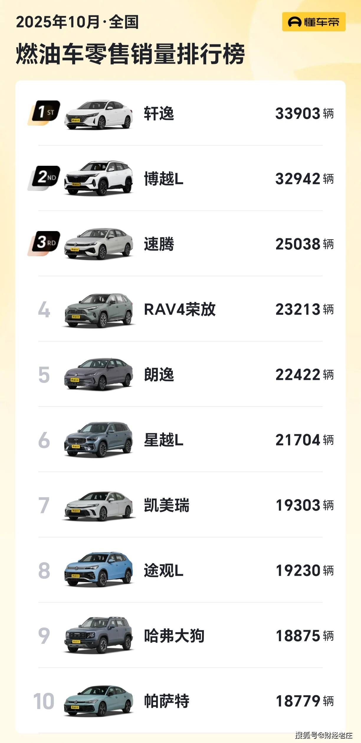在最新公布的燃油車銷量榜單中,日產軒逸憑借出色表現登頂冠軍寶座,成為本月車市焦點。與此同時,自主品牌有3款車型入圍前十,合資品牌則占據7個席位,其中長城哈弗大狗以第9名的成績引發關注。