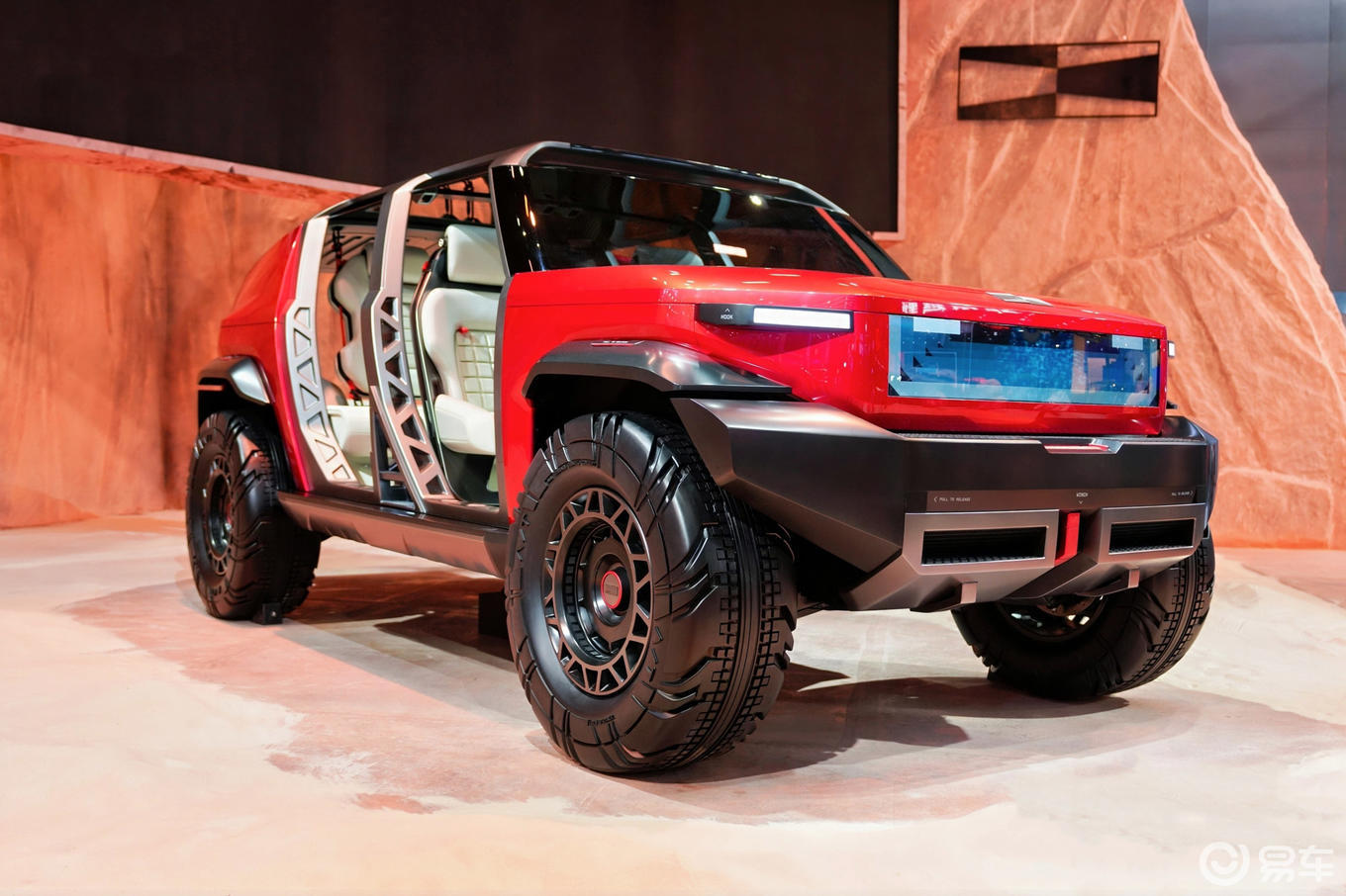 該原型車搭載創新的一體式車身結構,通過材料優化實現強度與輕量化的平衡。集成式車身踏板設計巧妙融入整體造型,既方便用戶攀爬操作,又強化了越野場景的實用性。其模塊化系統支持多個部件的快速拆裝,用戶可根據不同使用場景自由組合配置,這種設計理念在越野車型中尚屬罕見。