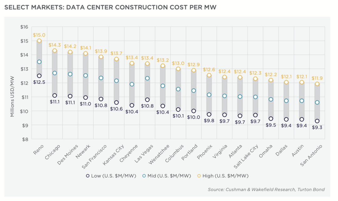 AI算力需求的爆發式增長,正在重塑數據中心行業的競爭格局。與傳統IDC(互聯網數據中心)以3-10kW機柜為主的模式不同,AI訓練集群對單機柜功率的需求飆升至80-120kW。據Cushman & Wakefield報告,北美成熟市場已因電力短缺陷入困境,變壓器、不間斷電源(UPS)等設備的交付周期延長至30-48周,每兆瓦建設成本攀升至930-1500萬美元。這一背景下,“誰能獲取電力資源,誰就能掌握算力話語權”成為行業共識,而燦谷的轉型路徑恰好踩中了這一趨勢。