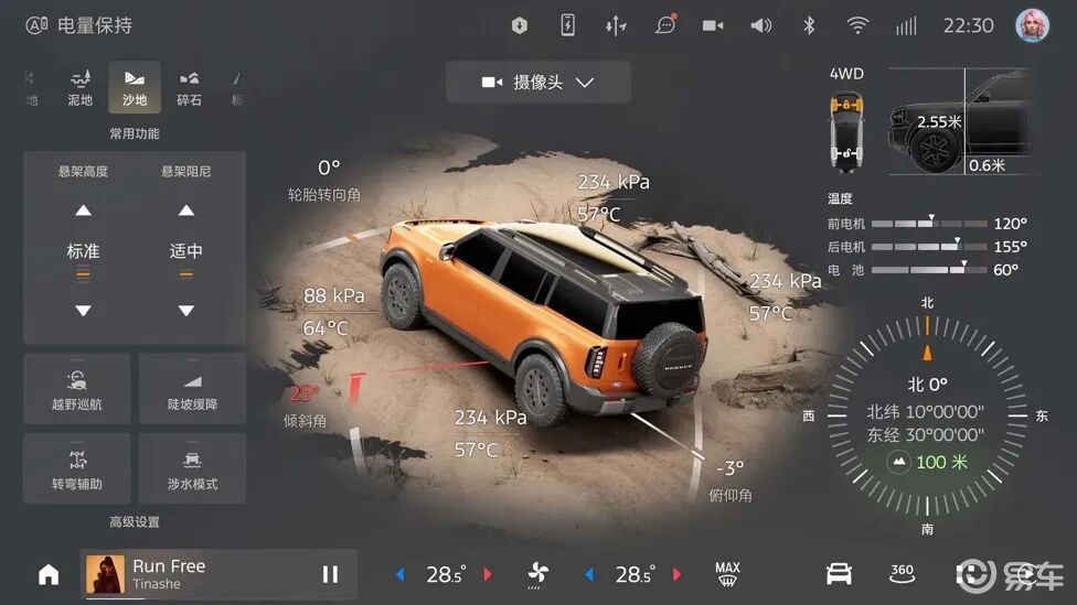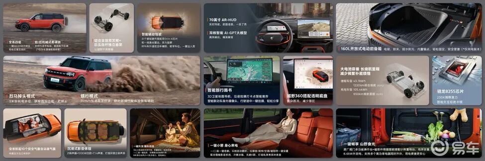 傳承福特烈馬家族的硬核基因,福特智趣烈馬是同級唯一配備前后電控、機械差速鎖的方盒子新能源SUV車型,全系標配四驅,增程版更配備了同級唯一的前后電控機械差速鎖,獨創行進中上鎖功能,且不限速,脫困無比從容。即便是越野新手,在激光雷達、360°攝像頭和底盤傳感器、同級唯一的70英寸超大AR-HUD抬頭顯示系統加持下,福特智趣烈馬的越野360系統可實時感知車身姿態,提前預警俯仰/側傾角風險,大大提升安全性。更重要的是,在福特豐富的越野生態系統支持下,福特智趣烈馬更具備同級唯一的智能旅行路書功能,支持酷炫3D衛星地圖導航和路書智能推薦沿途興趣點、最美拍攝地甚至無人機拍攝點,更可以語音實時播報,遇到路途中的美景,福特智趣烈馬也可聯動車身攝像頭和傳感器,隨時記錄分享,讓每一次探索都充滿驚喜。