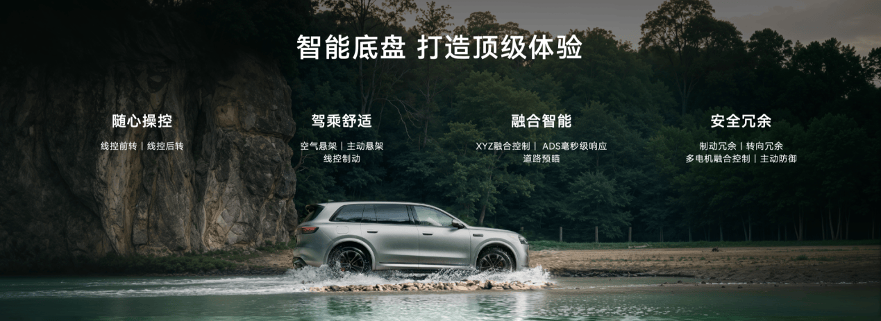 為了給用戶帶來更優質的駕乘體驗以及更高階的智能駕駛感受,賽力斯對底盤進行了深度升級迭代。新打造的智能底盤具備隨心操控、駕乘舒適、融合智能、安全冗余四大顯著特點。通過集成道路預瞄與彎道預判技術,配合XYZ融合控制與ADS毫秒級響應機制,車輛能夠提前精準識別并平穩應對坑洼、障礙等復雜路況,大幅提高行駛的穩定性與乘坐的舒適性。在安全層面,轉向與制動系統采用雙備份的安全冗余設計,同時融合三電機、四電機控制,構建起多重主動防御機制,即便在極端情況下也能確保行車安全無憂。