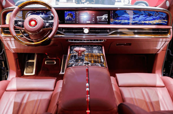 在產(chǎn)品設(shè)計(jì)層面,金葵花子品牌通過(guò)三款定制車型,構(gòu)建起中式美學(xué)的立體表達(dá)矩陣。國(guó)禮"丹霞"主題版將廣東韶關(guān)的丹霞地貌轉(zhuǎn)化為設(shè)計(jì)語(yǔ)言,車門飾板采用國(guó)家級(jí)非遺大漆工藝,通過(guò)12層髹涂與72小時(shí)自然陰干,再現(xiàn)"色如渥丹,燦若明霞"的地質(zhì)奇觀。這種將地理文化符號(hào)轉(zhuǎn)化為可觸摸的工藝美學(xué)的嘗試,使汽車內(nèi)飾成為流動(dòng)的文化展館。