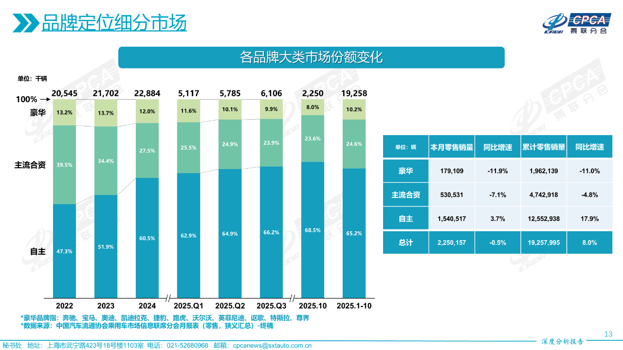 乘聯(lián)會數(shù)據(jù)顯示,今年前10個月豪華品牌銷量下滑11%,合資品牌下降4.8%。面對市場壓力,智能化轉(zhuǎn)型成為破局關鍵。乘聯(lián)會秘書長崔東樹指出,燃油車智能化不是對電動化的否定,而是產(chǎn)業(yè)發(fā)展的必然。他強調(diào):“下一代油車需要在保持續(xù)航和可靠性優(yōu)勢的同時,通過智能化升級與電動車在用戶體驗上實現(xiàn)平等。”