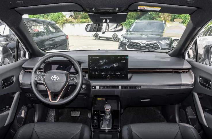 進入座艙,新款鋒蘭達的內飾布局以簡潔流暢的線條為主,空調出風口采用隱藏式設計,中控臺呈階梯式布局,整體風格迎合了年輕消費者的審美。盡管高低配車型在內飾用料上多以硬塑料和搪塑材質為主,但從豪華版開始,消費者可選擇撞色內飾方案,長期使用后觀感有所提升。這與國產新能源車在用料上的“豪華”風格形成鮮明對比,體現了豐田一貫的“樸素”調性。