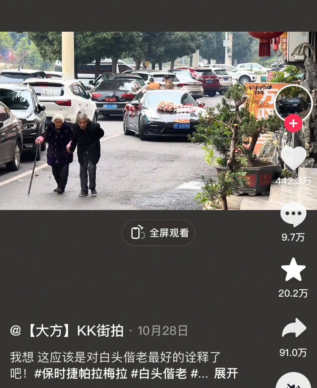 近期一段婚車視頻引發(fā)熱議:保時(shí)捷Panamera作為頭車行駛時(shí),前方恰好出現(xiàn)一位白發(fā)老人,構(gòu)成"白頭偕老"的溫馨畫面。保時(shí)捷官方隨即回應(yīng)"何其有幸,與愛同行",短短八字將產(chǎn)品自然融入幸福場景,既升華了品牌角色,又引發(fā)網(wǎng)友對愛情的美好聯(lián)想。這種不喧賓奪主的謙遜姿態(tài),讓品牌溫情形象深入人心。