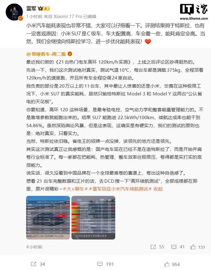 針對近期外界關注的能耗評測問題,雷軍通過社交平臺作出回應。他坦言小米SU7作為C級豪華轎車,因車身尺寸較大、配置豐富導致整車重量增加,能耗表現確實存在客觀差距。但同時強調,小米汽車團隊正持續優化技術方案,未來將把特斯拉作為標桿企業深入學習,在提升續航效率方面投入更多研發資源。