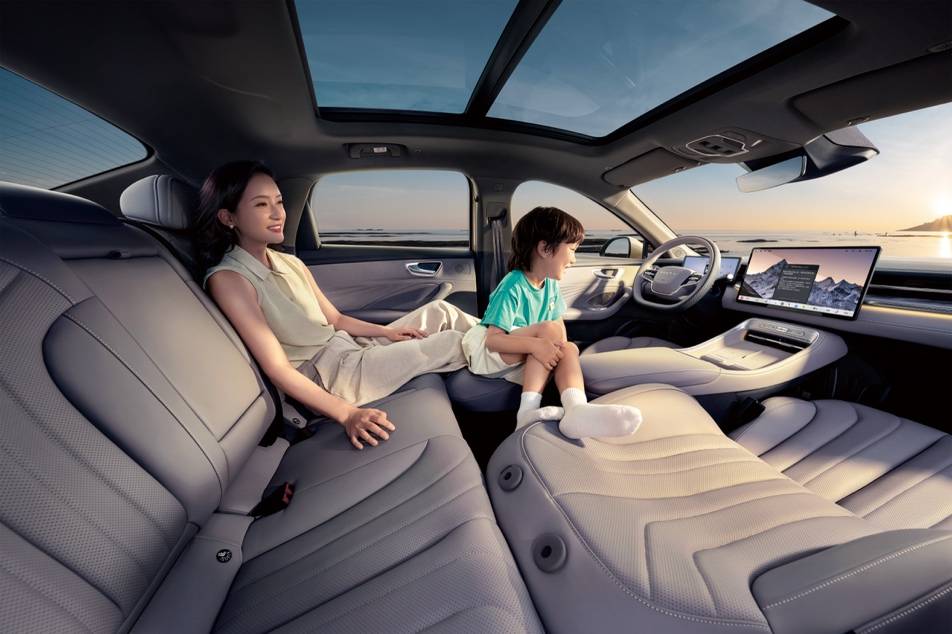 在舒適性配置上,榮威M7 DMH同樣誠(chéng)意滿(mǎn)滿(mǎn)。同級(jí)唯一的乳膠感慕斯舒壓座椅,采用Ultra Touch極觸面料與Surflex?反重力海綿填充,觸感細(xì)膩,久坐不累。全景沙發(fā)躺椅支持副駕一鍵折疊,輕松打造家人無(wú)障礙交流的舒享空間。配合mCDC智能動(dòng)態(tài)懸掛,有效過(guò)濾路面顛簸,實(shí)現(xiàn)“過(guò)坎不顛、過(guò)彎不晃”的平穩(wěn)駕駛體驗(yàn),堪稱(chēng)移動(dòng)的舒適之家。